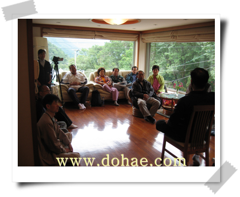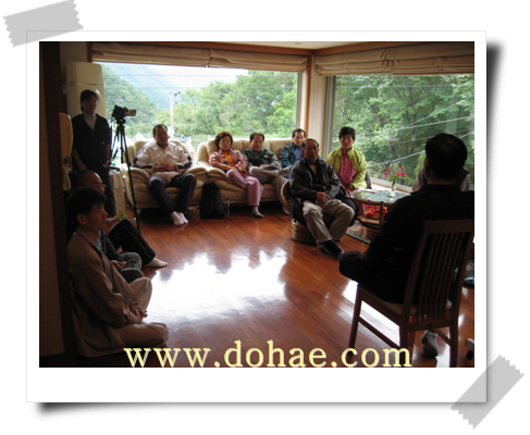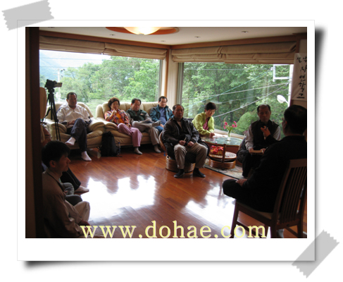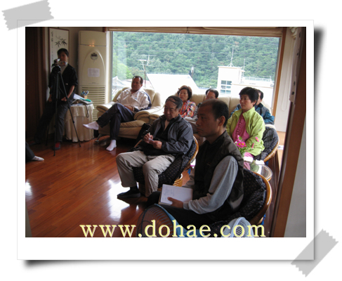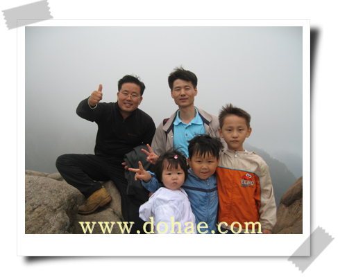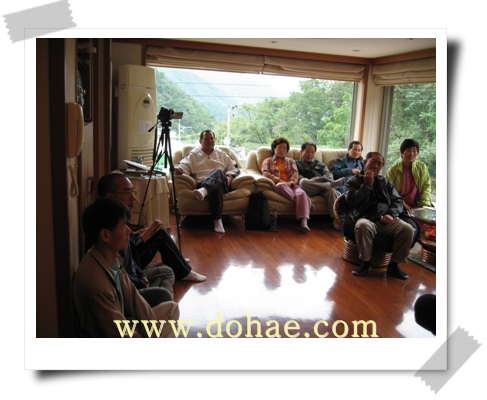 설악산 자연 학교 건강 좌담 중인 도해 선생. 다들 진지한 모습. 오색 약수 터 가는길 오색 약수 도해 선생과 현호 도해,김이사님,수현,현호,석원(김이사님 아들)