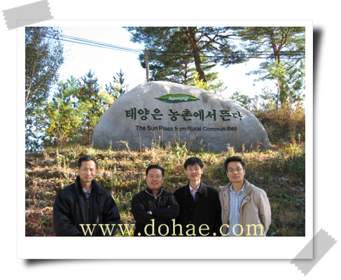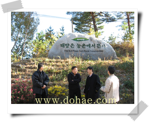 정복돌,도해 주경섭,김진용님.김명수님. 울진 한농 마을 마을 입구(왕피리) 한농 청년 회장 이병서님.