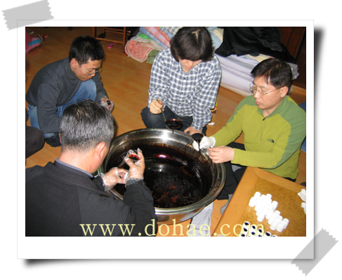 2007년 전나무고 오프라인 참석자 명단 (2007년 3월3~3월4일) 주경섭 정복돌 배찬우 김언경, 박현정님 -(경남) 김은주님 - (전남) 김용주, 안종웅님 - (경기) 김 현, 김영숙님 - (서울) 김진용님 - (서울) 권정은, 홍성호님 - (대구) 박상근 교수님 - (부산) 박상열, 김미숙님 - (경기) 서무열님 - (경남) 송재경, 김현숙님 - (충북) 신상훈 변호사님 - (대전) 이정우님 - (울산) 이정훈님 - (경남) 정용성, 조진숙님 - (서울) 정창섭님 - (서울) 차 환님 - (부산) 홍기화님 - (서울) 그외 성함을 파악하지 못한 15분과 아이들은 명단에 포함하지 못했습니다. 이번행사를 위해 애쓰신 모든분들께 감사드립니다. --정말 즐거운 시간이였습니다.-- 전나무.당귀.천궁(거유) 현호 증득중. 천궁,당귀 혼합. 30도 알콜 혼합-- 알콜 냄새만으로 취하는 것 같습니다. 여수 김은주 님 과 따님. 회원님들이 모이기 시작 하네용.^^ 울산 이정우님 선물 문어...너무 커요.고맙습니다.^^ 회원님들과 함께 한잔 할수 있는 먹거리입니다.^^ 서울 김현님 가족.^^ 양의사 홍석호님과 도해 김대리님. 술 값만 115만원..^^ 앗,주수현 공주님 모하세요..^^ 도해 선생 송재경님 부부(청주 MBC 부장) 은은한 향이 짙게 깔리는 밤이 되고 있습니다. 향에 취해 열심히 작업하시는 회원님들... 회원님들이 너무 열심히..^^ 잠시 저녁 식사...^^ 서이사님 안녕 하세요. 전나무 족욕중인 송재정님 사모.. 부산 94년 수영 대리점 차환 선생님 안녕 하세요..^^ 박상근 교수님 유황오리알 감사합니다. 앗,이정훈님. 전나무 액 시식중.^^중간 정검.. 맛과 향이 끝내줍니다.^^ 이정우님 문어 감사합니다.^^ 신상훈 변호사님 모하세요.^^ 새로오신 회원님들. 요번에 입사한 배찬우 군 참 열심히. 전나무 고 2차 작업중...엽록소 추출 작업 중앙대 정용달님. 박상근 교수님 (유황오리알 선물)ㅜ.,ㅜ 감사합니다. 다음날 아침 도해 선생과 시간. -- 인산의학에 대한 사랑과 관심으로 가마솥의 전나무고에 불을 지피면서 이야기 꽃을 피우고 있는 모습입니다.^^ 전나무 고 중탕중. 전나무고 완성. 다들 너무 고생 ...ㅜ,,ㅜ 전나무고 완성품 담기 -- 담는것도 쉬운일이 아니랍니다. 여수 김은주님 예약된 KTX 까지 포기하시고 마무리하고 계십니다. 1박2일 동안 전나무고 만들기에 참여하신 회원님들 수고 많이 하셨습니다. 그리고 좋은 경험 많이 하셨기를 바랍니다. 감사합니다.