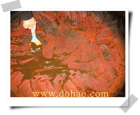 그것도 진액을 조성하는 덴 가장 좋은 약물이 돼요. ※ 9회 고열 처리 요령 소나무 숯도 마른 소나무는 비를 오래 맞아서 공해물질이 있어요. 서서 있는 생소나무 뽀여[베어] 가지고, 숯가마를 만들어 가지고 숯을 구워요. 그래 숯을 구우면 그 소나무 숯에서 나오는 탄소는 송진 성분이 있어요.