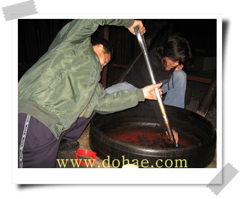 직접이지. 그 숯이 다 내려온 연후에 싹 쓸어 내고서, 보조한 부엌은 보조한 통이 그 소나무 숯을 두고 불을 살려 놓고 풀무를 새로 맞추어야 됩니다.