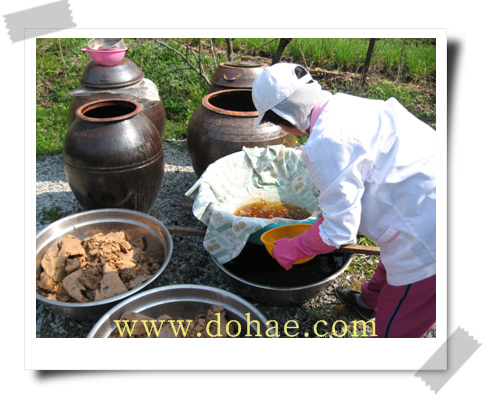 메주콩으로 검은콩을 밤 12시에 자정수(子正水=밤 12시에 뜬 샘물)로 삶아 새벽 4시(寅時)에 메주를 띄우되 종곡(누룩)을 섞어 따뜻한 온돌에서 24시간 이내에 완전히 띄우는 것이 좋다.