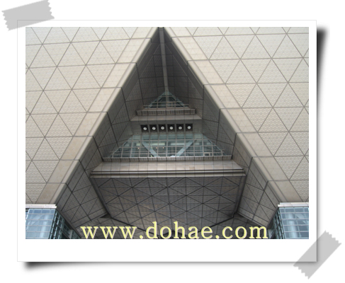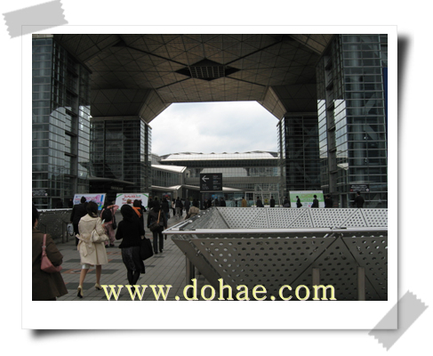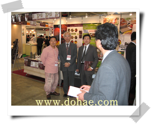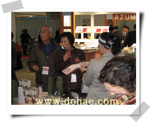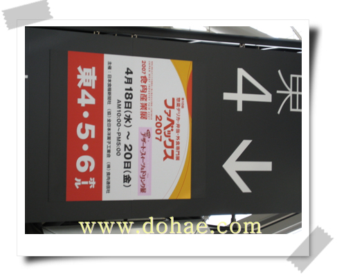 행사 건물 행사장 입구. 행사 광고. 일본 현지인들 죽염에 대단한 관심. 정창섭 대리