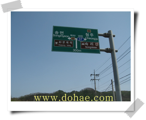 중부 고속도로 증평IC 증평IC 3거리 에서 괴산,증평 방향(속리산 화양동 방향) 여기 까지 대략 5Km 연탄 사거리에서 우회전 여기서 다리 건너 죄회전 200m 에서 우회전 청주과학대학 쪽으로~~~~ 화양동 청주 과학대쪽. 화양계곡 방향~~~청주과학대 정문~~~ 화양 계곡 청천 방향~~ 화양계곡,청천 방향(부흥 사거리) 부흥 사거리 지나~~~~ 7Km 금평삼거리 에서 우회전 청주(속리산 방향) **여기서는 화양계곡 쪽으로 가면 안됨.** 도해 죽염 공장