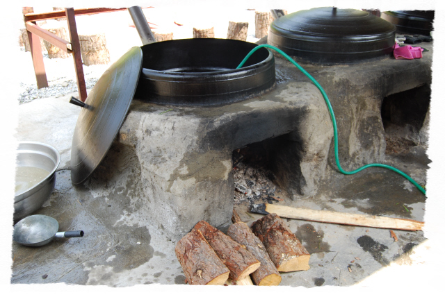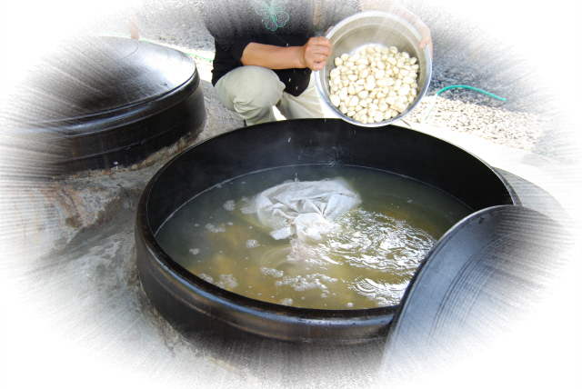 사골을 구하여 물에 담가 놓았다가 핏물을 뺀후에 1차로 사골만 솥에 넣고 한번 살짝 끓인 후에 뜬기름과 끓인 물을 버리고 새로운 물을 붓고 사골을 넣고 준비된 홍화씨를 넣는데 홍화씨는 씻은 후에 식혀서 살짝 뽁은 후 가정용 분쇄기로 분쇄한 홍화씨를 광목 자루에 넣고 솥에 넣는다.