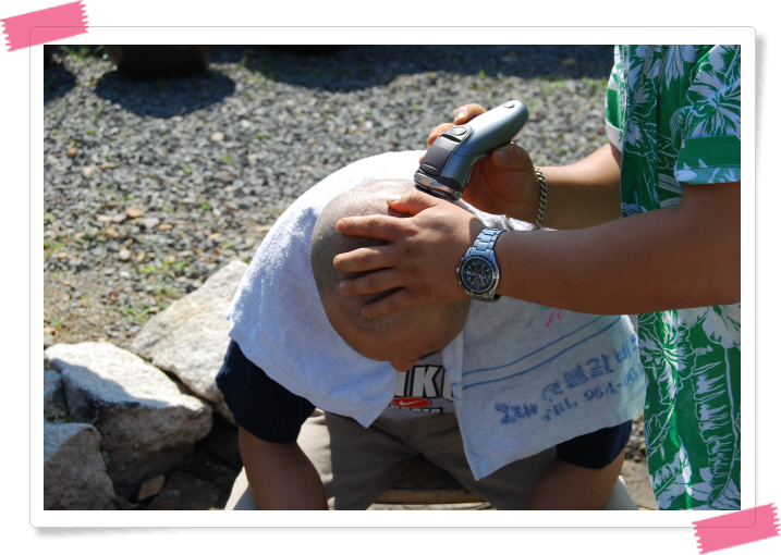 에고 ~ 그런데 둘째 딸(4살)이 하는말 "" 아빠! 그렇게 머리 짜르면 안돼지" 하면서 자꾸 모자를 주네요..ㅎㅎㅎ