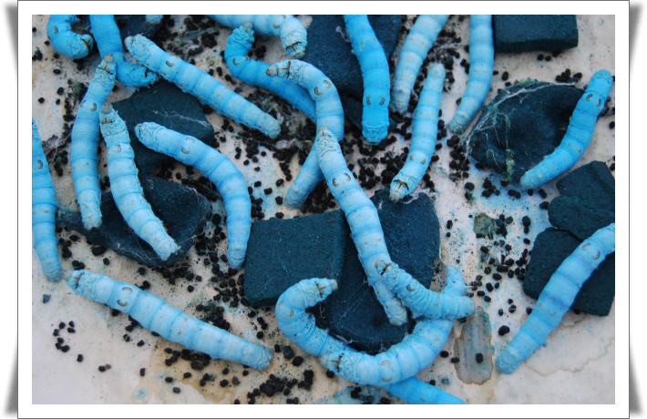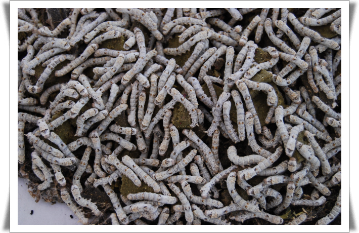 거참 희안하네요....^^;; 저기 네모난 덩어리는 누에 밥인가요???
