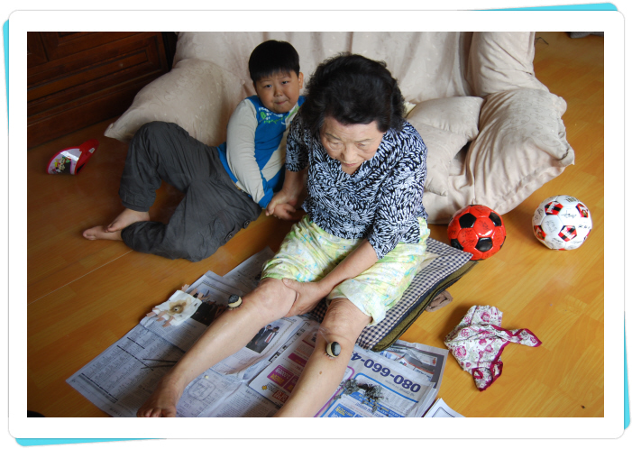작년에 뜸을 떠니가 무릅 아래가 아파서 뜸자리의 아픔은 몰라다고 하셨습니다.