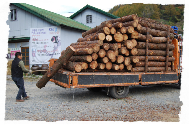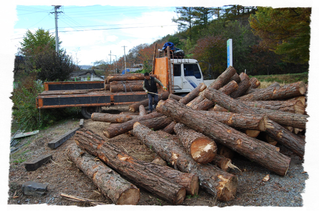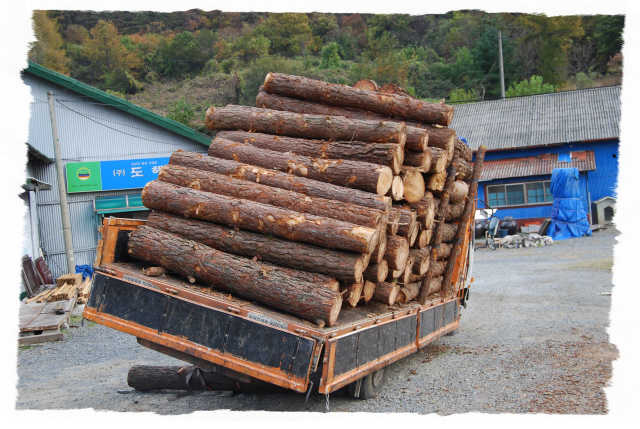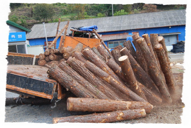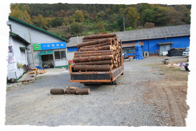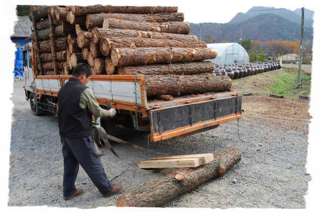 도해 죽염 공장 소나무 12톤 작업. 일년에 약 50톤...^^"