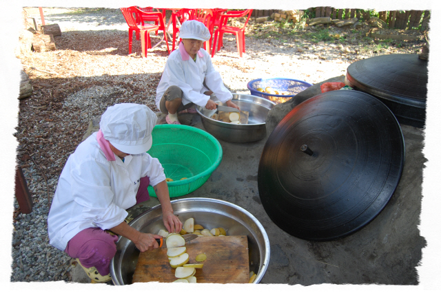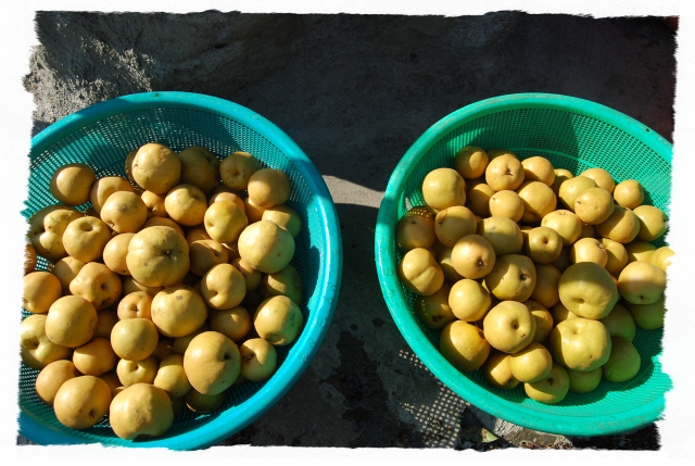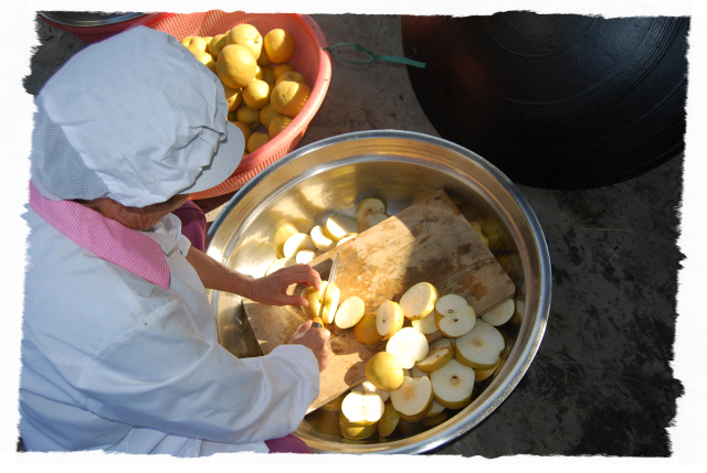 도해 "배엿"작업. 6년 無 농약 "배"