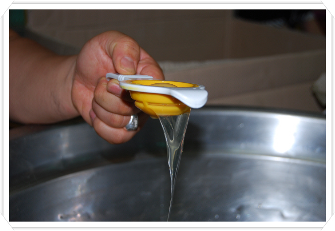 고백반과 유정란흰자와의 혼합비율이 어떤난반을만들는지 중요한 문제같았습니다. 그것이 경험자의 노하우이겠지요^^*