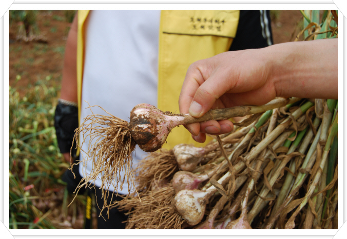 4無 농법=무비닐.무농약.무제초.무비료 (단양 유황 밭마늘)