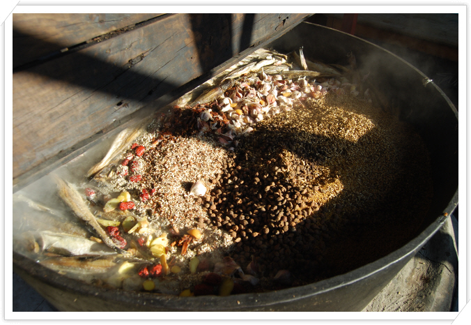 죽염(竹鹽) 1돈5푼(약5~6g)을 함께 복용한다.