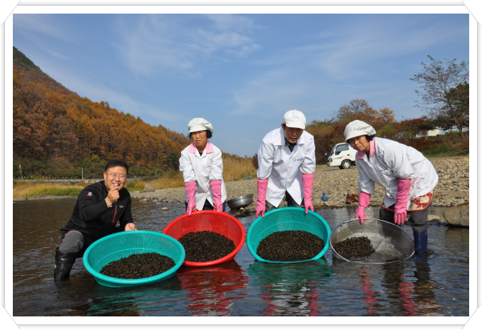 물 맑고 공기(空氣) 좋은 청정(淸淨)지역인 괴산군 청천면 일대에서 잡은 참 다슬기를 깨끗이 세척 후에 가마솥에 넣고 소나무 장작불로 3일 밤낮으로 다리는데